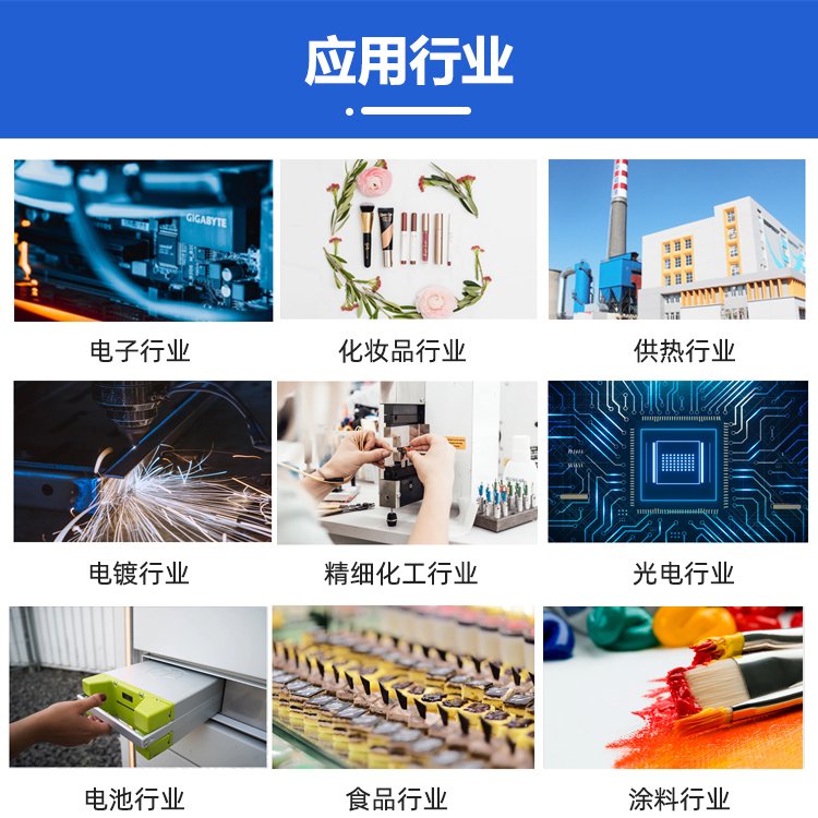 适用行业:生产用纯水、电子半导体、液晶面板、光学光电、能源电池、新材料行业、电镀氧化、 化工行业、医疗GMP纯化水、食品饮料加工、化妆品行业、饮水工程等